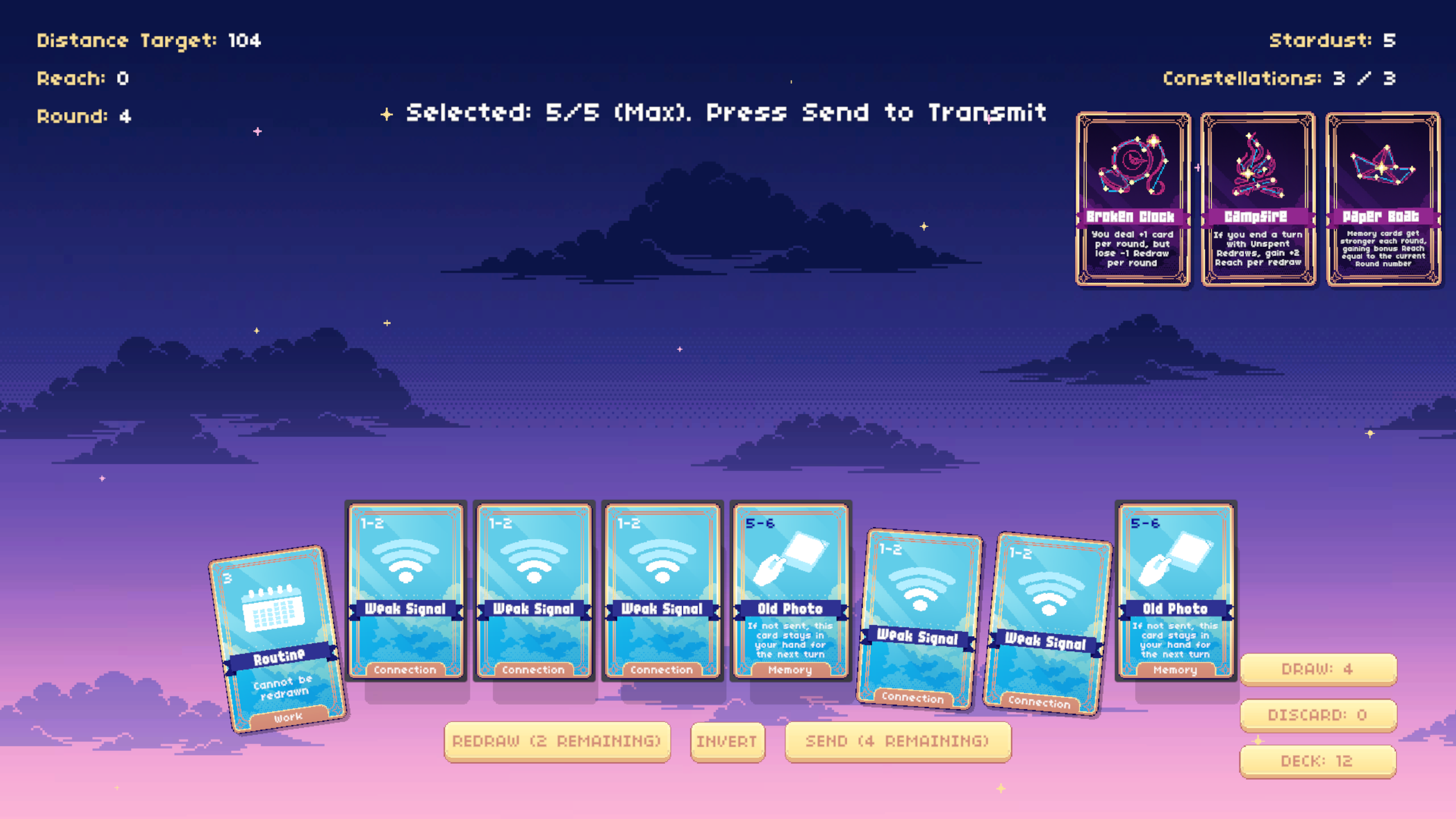 Connections is a cozy, roguelite deckbuilder created for thatgamejam01. Inspired by Balatro and Slay the Spire.